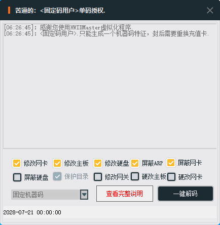 永久版本享有 网关修改、主板硬改、网卡硬改功能。