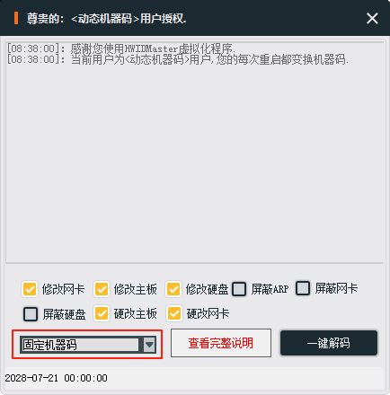 主要更新添加动态机器码固定机器码功能。修复部分网卡修改无效问题